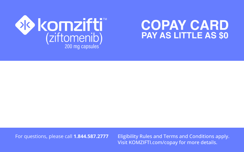 Eligible commercially insured patients may utilize KOMZIFTI Copay Support and pay as little as $0. Ask the pharmacist for details.